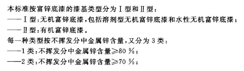 富鋅底漆分為有機富鋅底漆和無機富鋅底漆(溶劑型無機富鋅底漆和水性富鋅底漆)