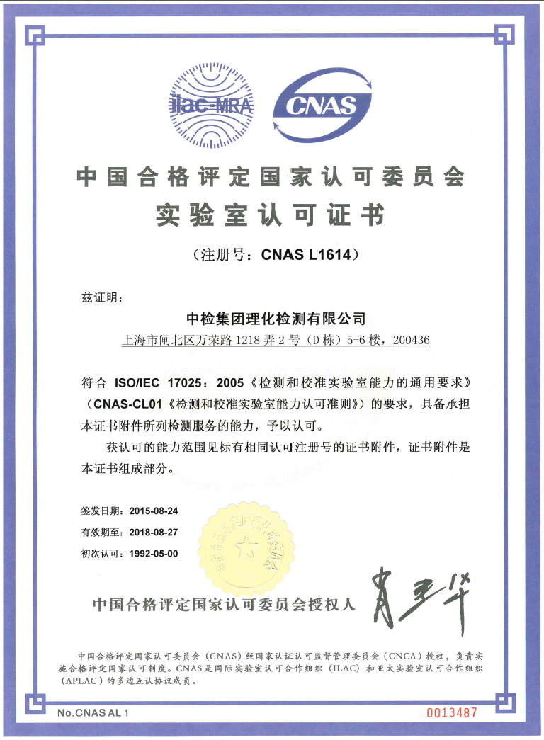 中檢集團(tuán)理化檢測(cè)有限公司(中檢理化,CCICLAB)是中國(guó)檢驗(yàn)認(rèn)證集團(tuán)測(cè)試業(yè)務(wù)平臺(tái)的子公司,作為中檢集團(tuán)的華東檢測(cè)基地,中檢理化長(zhǎng)期致力于為政府及國(guó)內(nèi)外客戶提供貿(mào)易和生產(chǎn)各環(huán)節(jié)的測(cè)試技術(shù)解決方案。 經(jīng)過(guò)20多年的奮斗,已成功獲得了“國(guó)家級(jí)計(jì)量認(rèn)證合格單位”、“中國(guó)合格評(píng)定國(guó)家認(rèn)可委員會(huì)(CNAS)認(rèn)可實(shí)驗(yàn)室”、“國(guó)家強(qiáng)制性產(chǎn)品認(rèn)證(3C)指定檢測(cè)機(jī)構(gòu)等多項(xiàng)國(guó)內(nèi)外重要資質(zhì),業(yè)務(wù)類別涉及環(huán)境檢測(cè)、玩具、童車(chē)、嬰童用品等眾多消費(fèi)品和工業(yè)品領(lǐng)域。