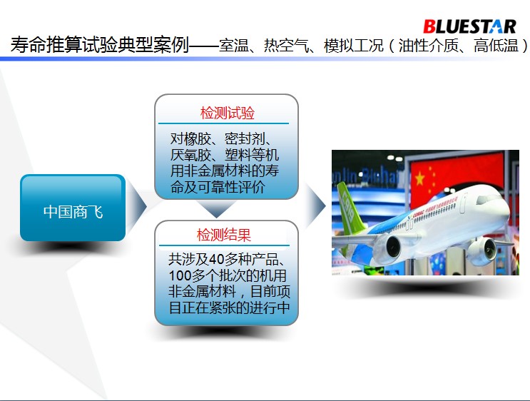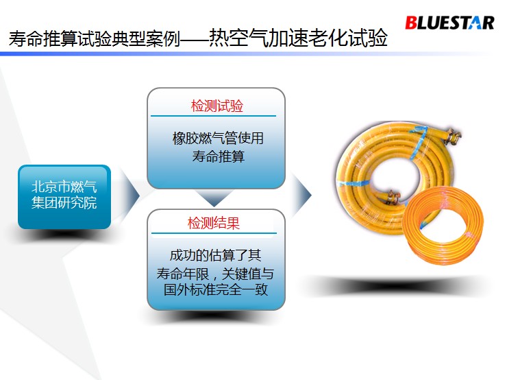 1、壽命評估-貯存壽命(假設(shè)某種材料在常溫空氣中可以放置多少年)通過熱空氣老化,以及材料最密切的力學(xué)性能作試驗(yàn), 得出相關(guān)的試驗(yàn)數(shù)據(jù),推出材料的使用年限。