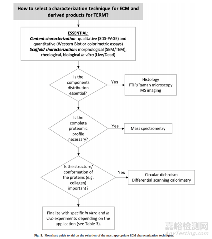 圖5提供了一個(gè)流程圖,以幫助研究人員使用脫細(xì)胞ECM選擇最合適的表征技術(shù),以評(píng)估不同的特征。